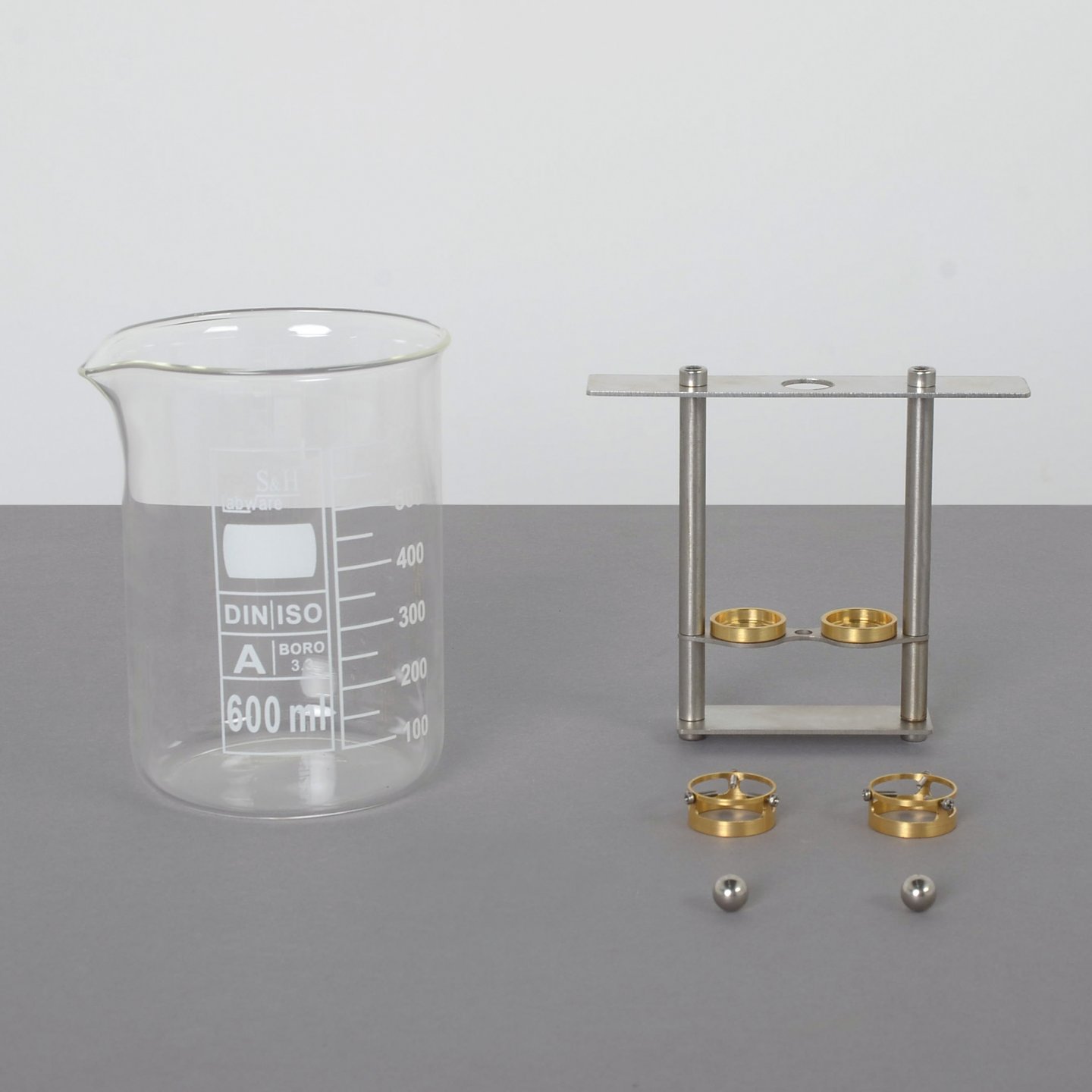 Les ensembles comprennent un support de bague, une plaque inférieure, 2 pièces. anneaux en laiton, 2pcs. guides de centrage à billes en laiton, 2pcs. billes en acier inoxydable et un bécher en verre (MUTB-0231E avec MUTGG-1330 ou MUTB-0231A avec MUTGG-1335).