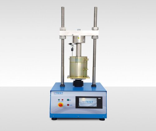 L’UTS-0856.ACPR est conçu pour enfoncer le piston de pénétration dans l’échantillon de sol à une vitesse constante afin de mesurer la charge appliquée et la pénétration du piston à des intervalles prédéterminés. La vitesse du piston peut être réglée entre 0,5 mm/min et 5 mm/min à l’aide de l’unité de contrôle U-Touch PRO. Cette fonctionnalité principale permet à l’utilisateur d’effectuer des tests conformes aux normes EN, ASTM avec la même machine.